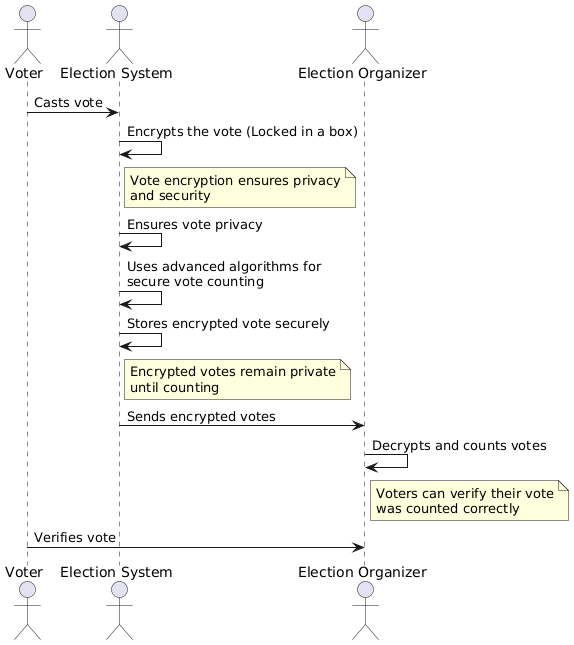 Typically you want votes to be non-identifiable so you can't show that Person A voted for Candidate 1.