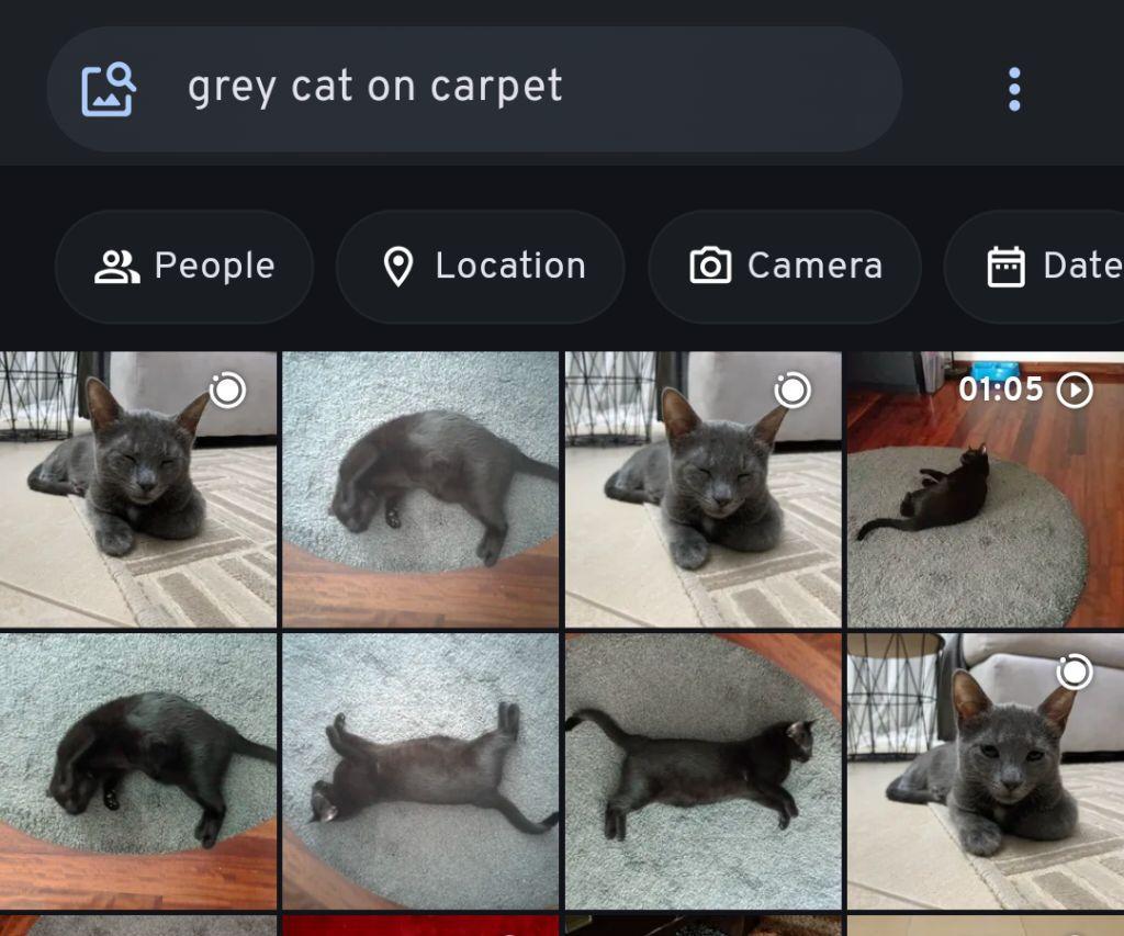 So you can search “black cat on blue carpet in the morning” and expect to see a result (if it exists)